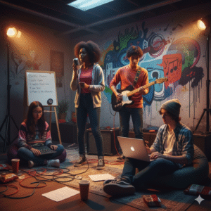 Adolescence is a time of mental development, along with physical growth. Interest in a variety of subjects can focus on shared artistic endeavors, such as forming bands, performing plays, participating in music competitions, making short films, creating YouTube videos, creating reels, or creating collaborative murals.